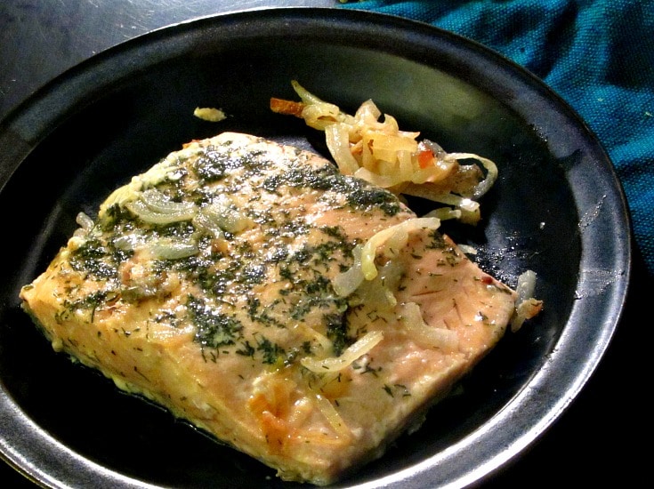And of course, you don’t have to use salmon. This is basically the same way I cooked bluefish with leeks. The dill would work as well on a white fish, you might want other seasoning on your own local fish, depending on flavor, or just skip it. But you can pretty much cook any fish fillet just as quickly with this method!
