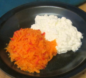 I’ve made this ginger carrot salad a couple of times, now. I used the food processor for the carrots the first time, and made a big batch – but it’s easy to toss together in small amounts, and I just used a hand grater when I wanted enough for only one meal. (OK – when I only had two carrots in the house. It keeps nicely, so is well worth making a big batch…)