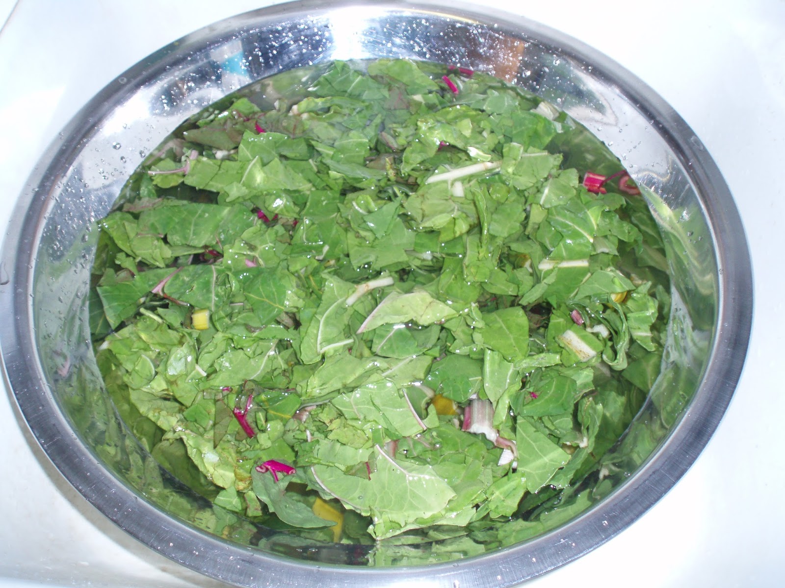 The washing method is key. I use this to wash lettuce and other salad greens, too. Vegetables from a CSA or farmer’s market haven’t usually made the detour supermarket vegetables may have made to a washing plant – where everything is made nice and clean, at the loss of another day or so of freshness, more handling, another layer of expense… I don’t mind washing the sand from my own kale, but I need to be sure I actually do so.