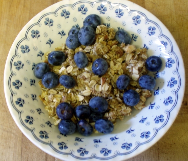 I use Regular for this – Old Fashioned gets a bit chewy for my taste (though some like it, and if you have that it can be used.) I think Instant might be a bit fragile, but honestly I never used it in this. I could see using it if you had a bit of trouble chewing, though in that case I’d probably skip the granola and just cook my oats… Might be nice for variety, though.